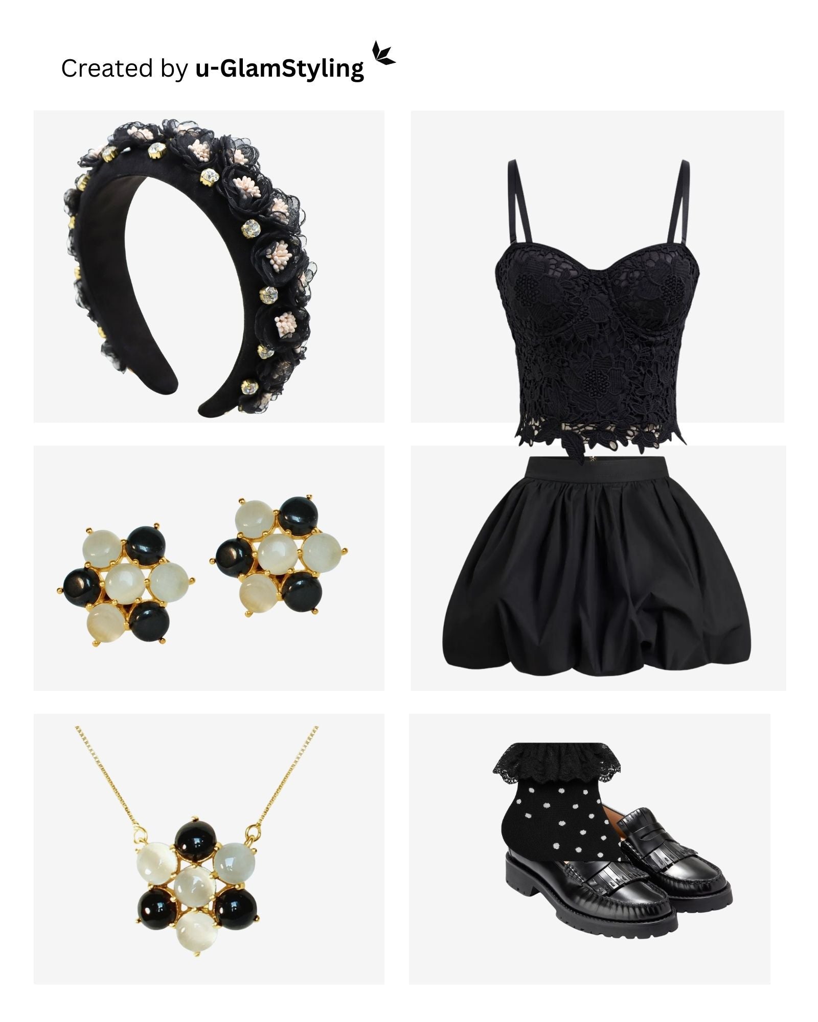 Instead of going soft and floaty, I leaned into a rock-chic mood. A lace corset brings that structured femininity. The bubble skirt adds volume and a little playful drama. And then — loafers. Yes, loafers. Styled with ruffle lace socks and subtle polka dots, they add contrast and personality. The polka print gives just enough pop and fun so the black doesn’t feel flat or heavy.