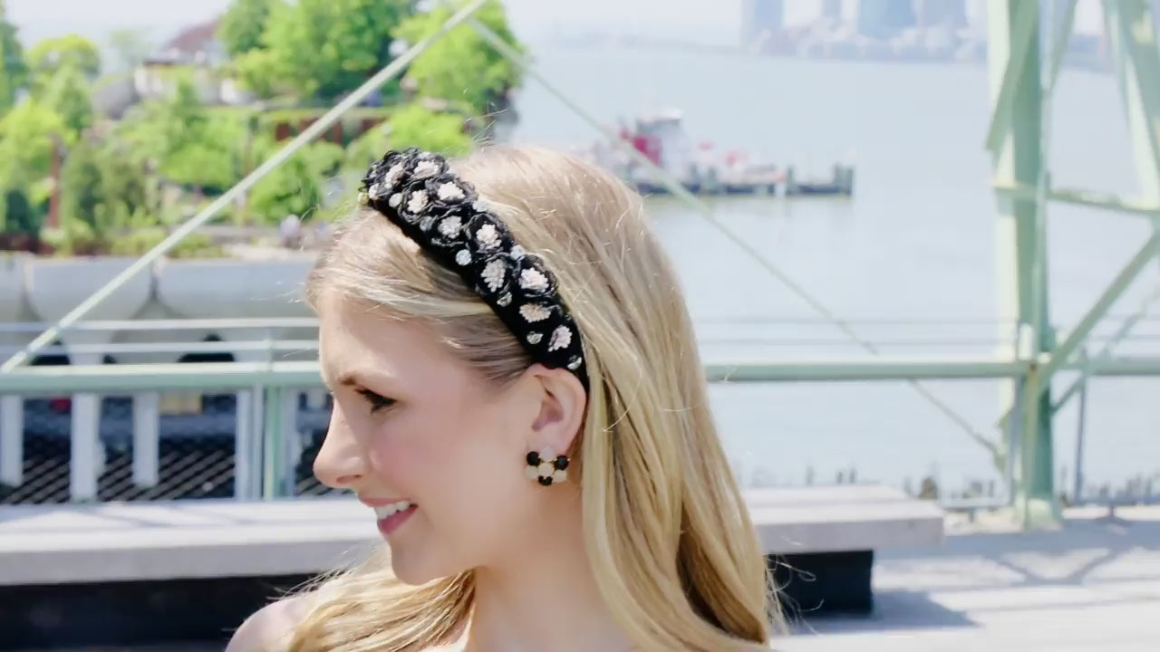 To match that energy, I paired it with our glossy resin cabochon flower stud earrings and the coordinating floral necklace. The resin finish gives the florals a polished, almost lacquered glow, while the mix of black and ivory tones keeps everything grounded and chic. Together, the trio feels bold but intentional — romantic, but with edge.